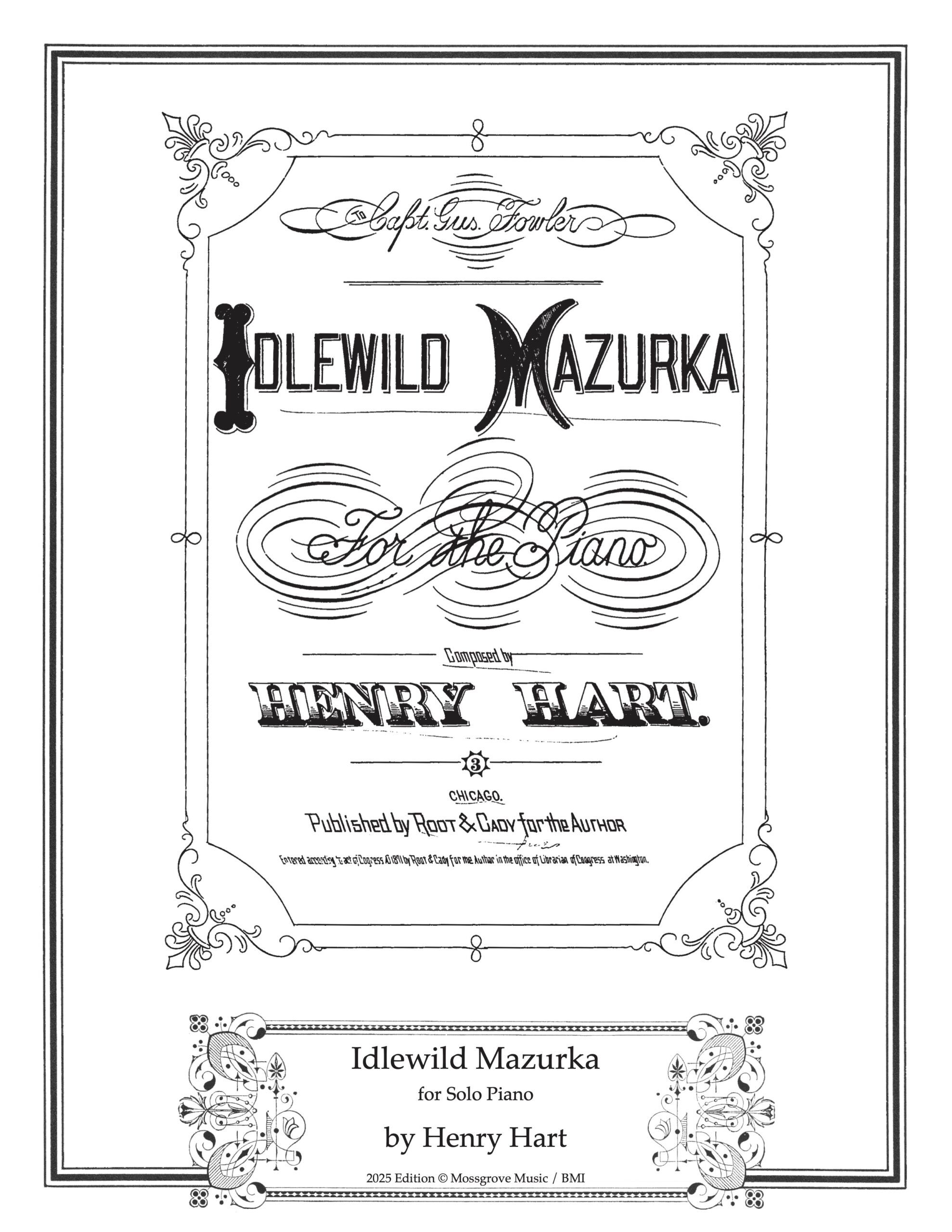 Written for solo piano and published in 1871, this piece was dedicated to Captain Gus Fowler, the captain of the packet boat the Idlewild. Henry Hart worked as a musician and barber on the Idlewild, which delivered mail along the Ohio River near Evansville, IN where he lived.